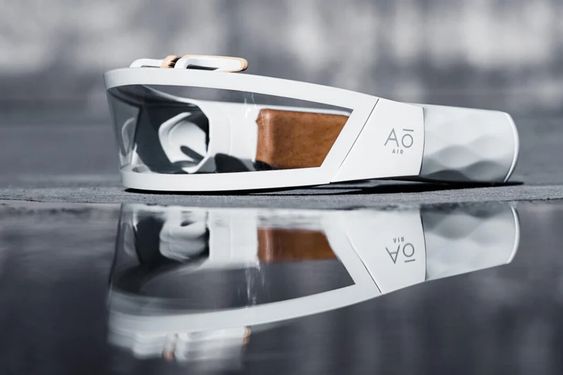 O AO air é um wearable, uma máscara transparente que atravessa o rosto, cobrindo a boca e o nariz. É incorporado a um sistema de ventiladores que se adapta à respiração do usuário e limpa o ar que passa pela máscara.
