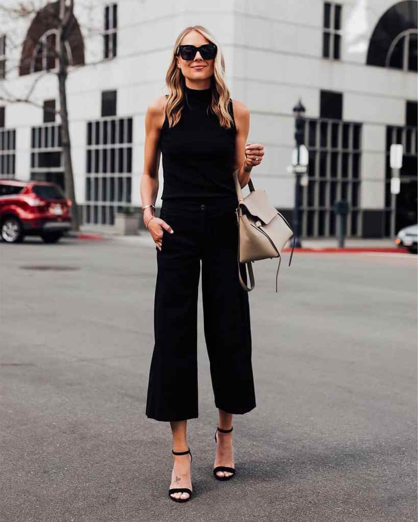 O comprimento ideal da pantacourt é midi, bem no meio da canela, embora algumas sejam mais curtas ou mais compridas. A variação do comprimento é uma opção sua, que pode escolher aquela que faça você se sentir mais confortável.