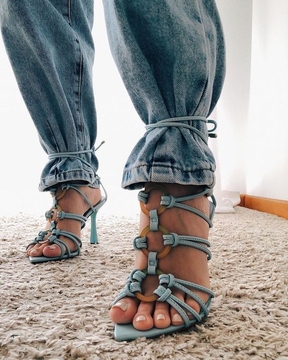 As sandálias com tiras finas são bem delicadas e pedem um look mais chic, porque combinam com tecidos mais finos e leves. Mas, nada impede você de fazer o estilo HI-LO e usá-la com um jeans destroyed. Fica a dica!