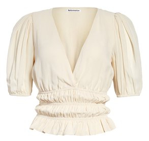 Ela tem decote V – que favorece todas nós!, é levemente cropped – cai (+ ou -) em cima do umbigo e tem uma manga bem soltinha. Muito romântica e super fofa!