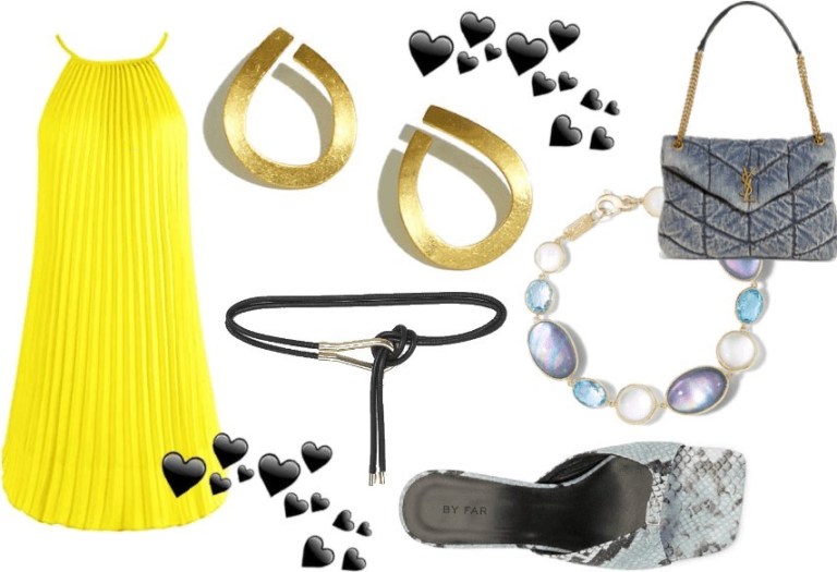 1 LOOK DA FASHIONISTA, COM UM DRESS CURTINHO E AMARELO, SUPER VIBRANTE COM ACESSÓRIOS DESCOLADOS