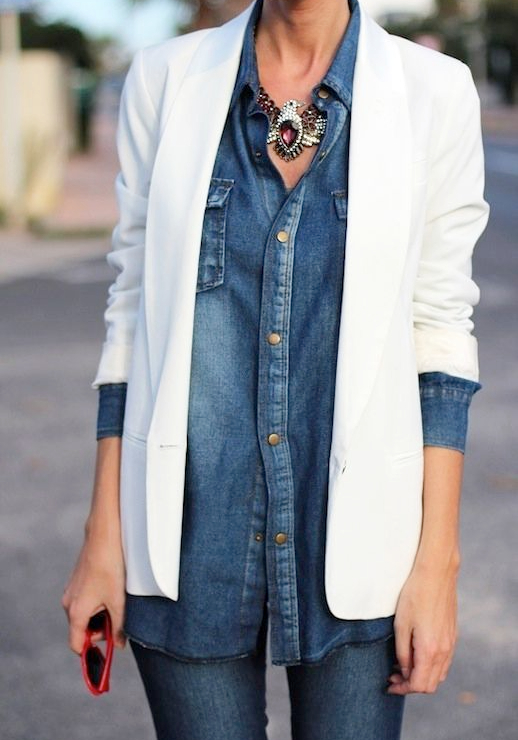 A minha diquinha fashion é o look casual chic. Acho um match perfeito: calça jeans com blazer. O blazer dá um ar mais sofisticado ao jeans. É um visual hi-lo, moderno e sofisticado.