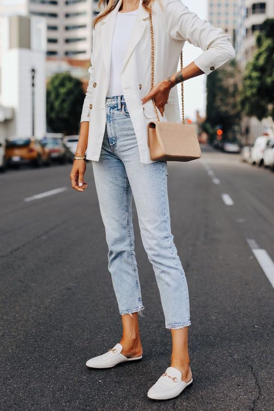 A calça jeans é uma peça prática e super combina com a versatilidade do blazer. Ele pode ser colorido, com tecido nobre ou não, e a modelagem ajustada ou mais ampla. Basta escolher o seu preferido e arrasar!