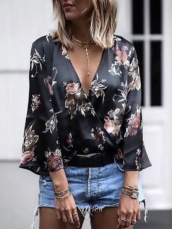 O estilo ‘wrap blouse’, a blusa transpassada, continua em alta, e pode ser facilmente usada em looks casuais ou sofisticados. Ótima opção para diversificar os seus lookinhos.