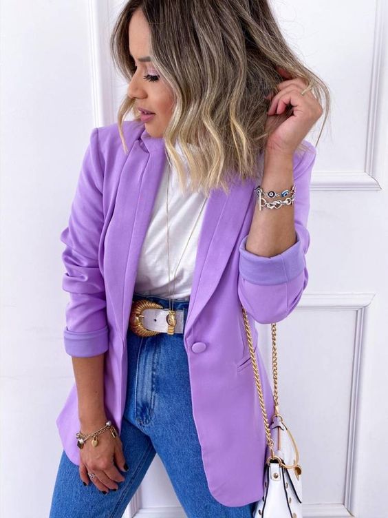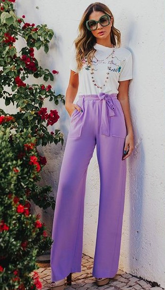 O lilás é uma cor clara e bem neutra. Pode ser facilmente usada com outras cores fortes, com jeans ou com preto e branco.