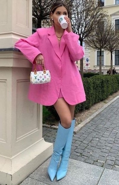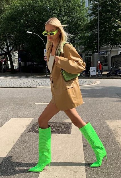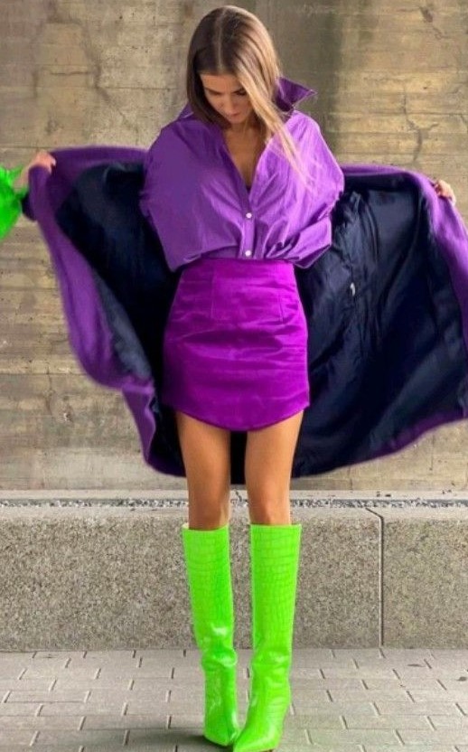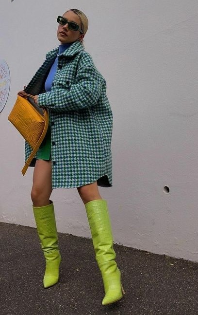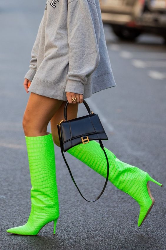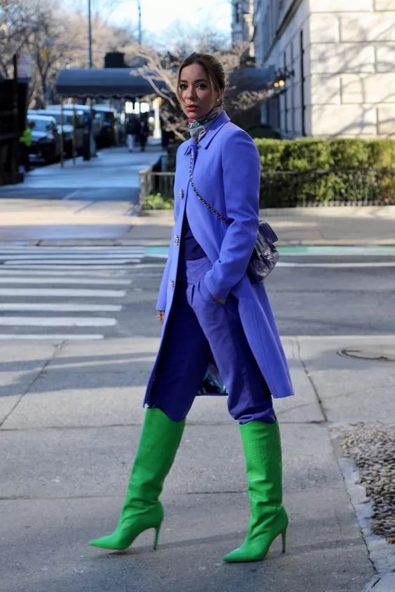 Se você quer se jogar nessa tendência colorida dopamine dressing, pode começar pelas botas. Elas dão um super UP no seu look. E você pode combinar com peças de roupas em tons mais neutros, pra começar devagarinho… Não precisa usar todo o look com tons vibrantes.