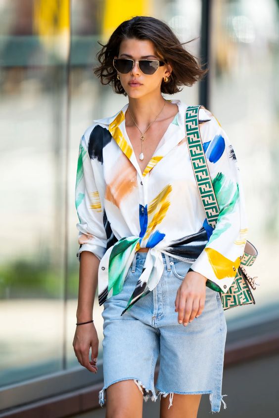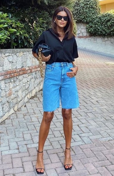 As bermudas também são hit desse verão. Principalmente em jeans. Sem muito acabamento e levemente destroyed, a bermuda jeans é um clássico, combina com peças mais sofisticadas, criando um look hi-lo.