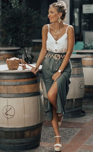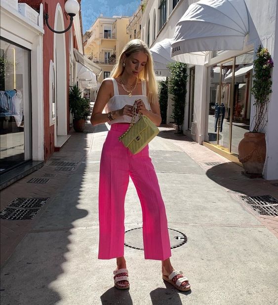 Na temporada de calor você dá preferência aos acessórios com textura mais natural, sandálias sem salto ou saltinho comfy, cores em tons neutros e modelagens mais soltinhas e frescas.