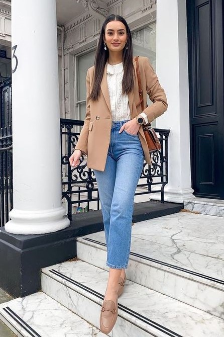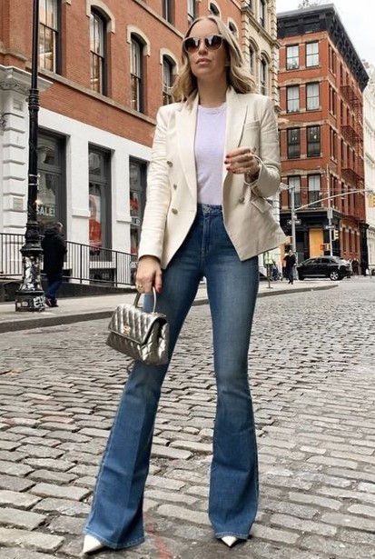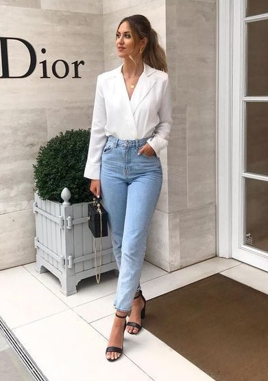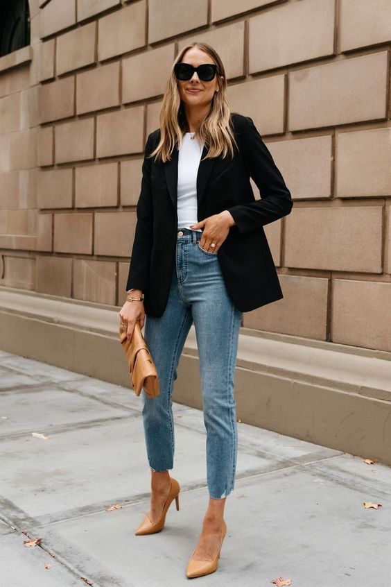Peças que elevam seu jeans a outro nível e dão um UP no seu look são: blazer, camisa com tecido delicado, scarpin, bolsa statement, design diferenciado.
