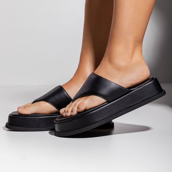 Para os pés, tem 3 modelos de sapatos que vem com tudo: as sapatilhas tradicionais e com bico redondo; as ‘Mary Jane’, aquelas com tirinhas em cima do peito do pé (com e sem salto); e os chinelos com solado alto, tipo flatform.