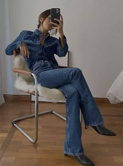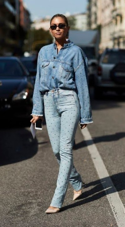 Você pode usar uma peça inteira com jeans como um macacão, por exemplo. Pode usar uma calça jeans com uma camisa jeans, ou com uma jaqueta (as fashionistas amam!). Ou ainda, usar os acessórios, como bolsa e sapato, em jeans também!