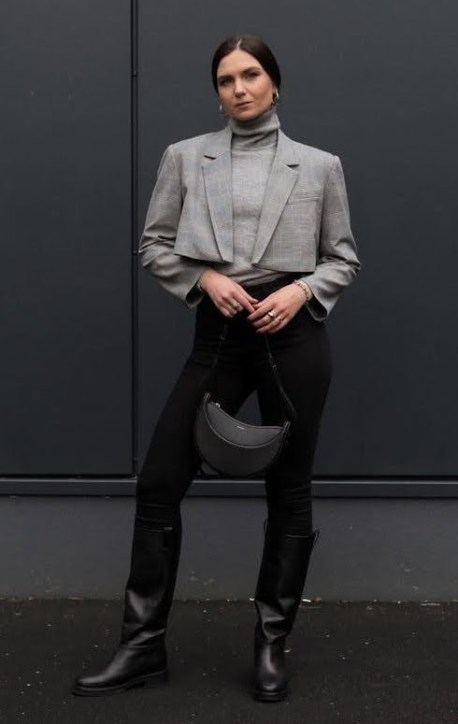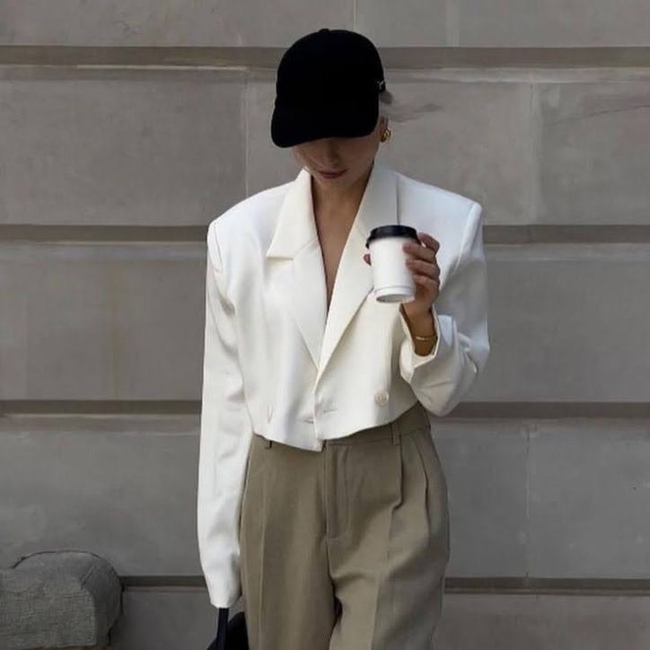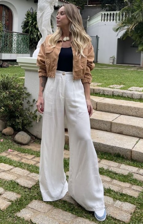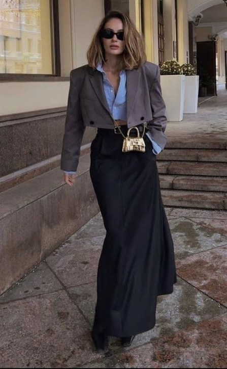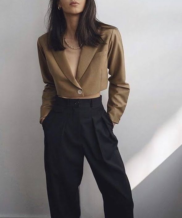 A terceira peça cropped combina super bem com a modelagem de cintura alta, calças ou saias, e com alfaiataria deixa o visual ainda mais sofisticado.