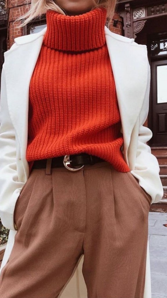 O marrom é uma cor neutra e que pode servir de base para criar looks elegantes e com a cara do inverno. Ele cai super bem com toda a paleta dos tons terrosos, tornando o visual mais vibrante. Por exemplo: combinar marrom com laranja fica lindo e traz mais leveza pro look.