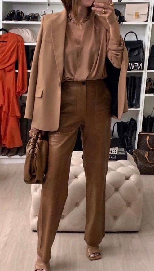 Outra excelente opção com marrom é um look monocromático, ou ton sur ton em marrom, é super elegante, contemporâneo e sofisticado.