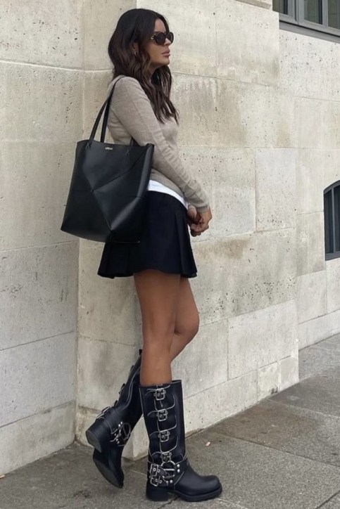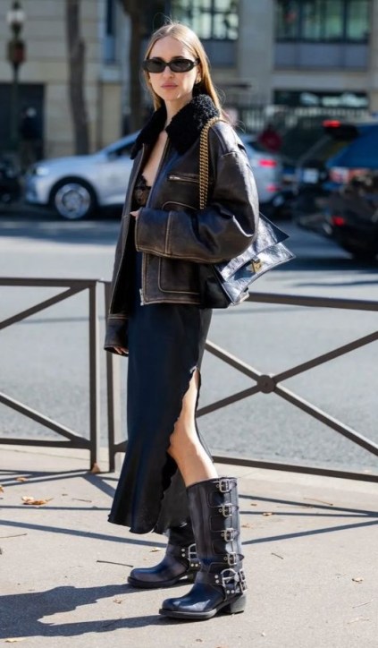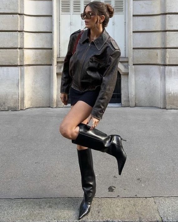 Como a bota de cano longo, bico fino, a de montaria, a cowboy, e a biker (assim como a jaqueta).