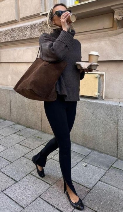 Nos tons de marrom, a bolsa de camurça é maior e tem design moderno com um toque retrô.