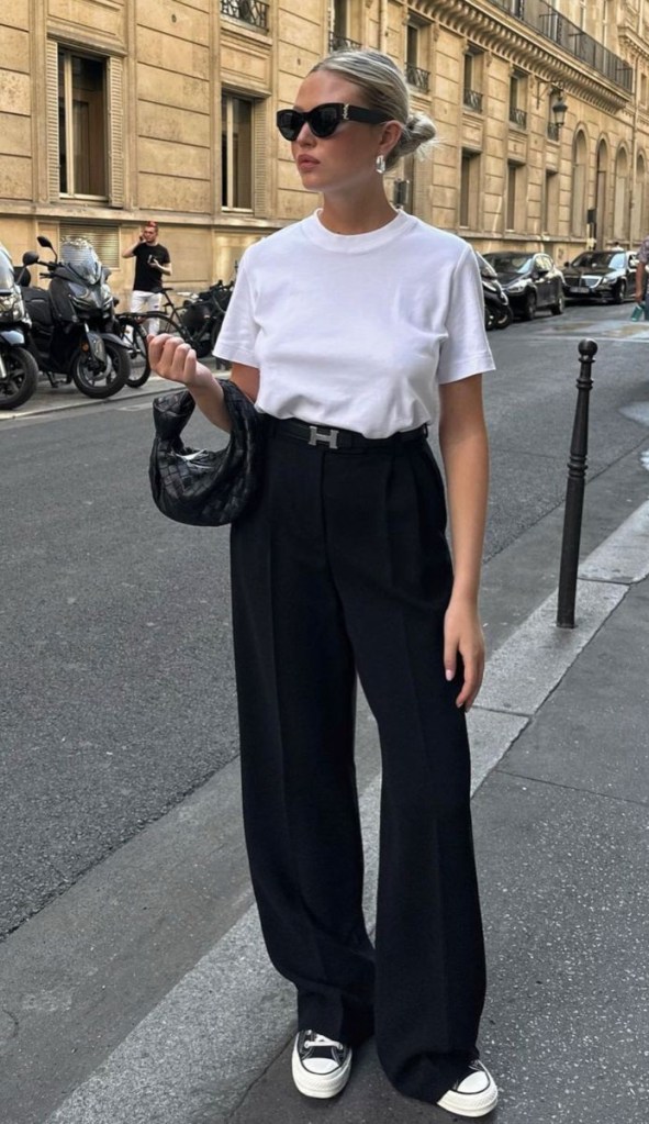 Uma ótima opção pra quem não gosta da modelagem oversized, é a calça RETA. Ela é clássica, minimalista e sempre elegante.