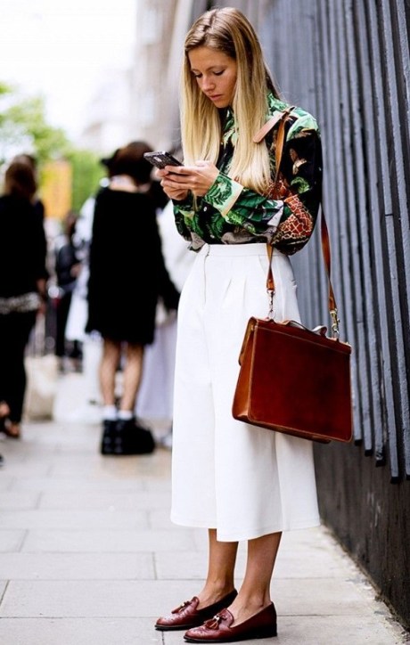 Esse sapato já vem em alta desde os modelos com sola tratorada. Dessa vez o mocassim está mais delicado, cool e sendo usado com meias curtas.