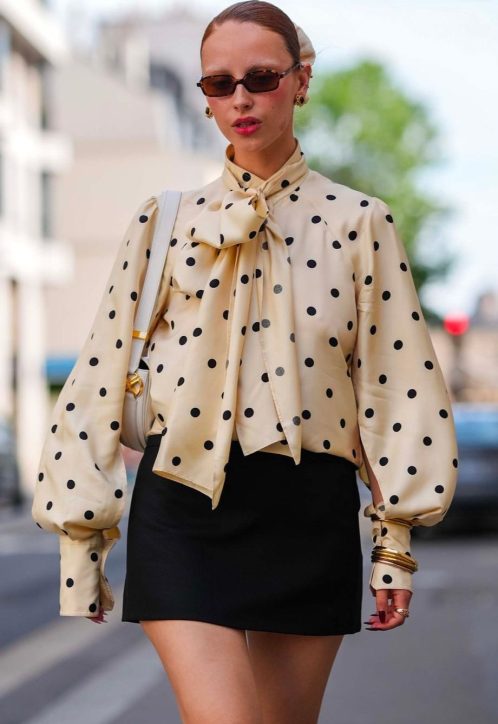 Você pode usar a estampa poá em várias peças, pode apostar em blusas com modelagem cropped, manga bufante e camisa oversized. Ou, em vestidos curtos ou longos, saias midi e pantalonas. Pode combinar com jeans e alfaiataria. E, principalmente, pode dar o seu toque pessoal e trazer o seu estilo pra usar essa estampa clássica.