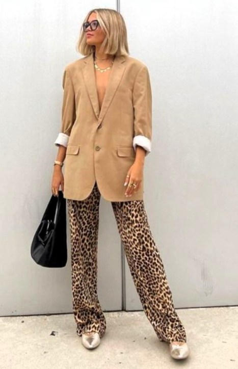 A estampa de onça combina super bem com os tons neutros, com bege e caramelo fica super chique e, com preto e branco não tem erro. Já com cores fortes como vermelho é uma combinação ousada.